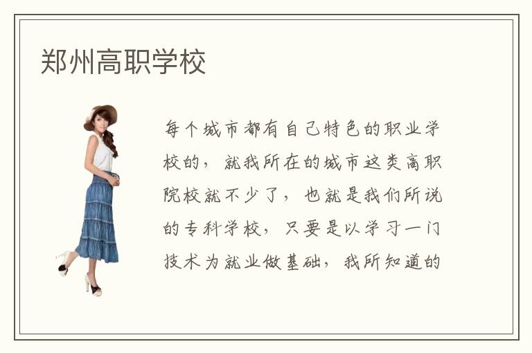 每個(gè)城市都有自己特色的職業(yè)學(xué)校的,就我所在的城市這類高職院校就不少了,也就是我們所說的??茖W(xué)校,只要是以學(xué)習(xí)一門技術(shù)為就業(yè)做基礎(chǔ),我所知道的鐵道學(xué)院,醫(yī)學(xué)院,都是這種類型的,鄭州高職學(xué)校,鄭州高職學(xué)校評價(jià),推薦好的鄭州高職學(xué)校