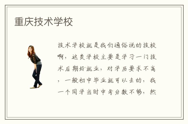 技術(shù)學(xué)校就是我們通俗說的技校啊,這類學(xué)校主要是學(xué)習(xí)一門技術(shù)后期好就業(yè),對學(xué)歷要求不高,一般初中畢業(yè)就可以去的,我一個同學(xué)當(dāng)時(shí)中考分?jǐn)?shù)不夠,然后就選擇去技校了,家里當(dāng)時(shí)支持讓學(xué)汽修,現(xiàn)在已經(jīng)畢業(yè)上班了,薪資待遇還不錯,雖然是比較辛苦,但是比起當(dāng)時(shí)直接去打工他就很滿意了,而且現(xiàn)在他薪資完全超過很多白領(lǐng)了,如果你選擇去重慶技術(shù)學(xué)校學(xué)一門技術(shù),那么選擇一門自己感興趣的專業(yè)很重要的,而且要提前對學(xué)校有一定了解,考察一下師資力量,教學(xué)質(zhì)量這些問題,有的學(xué)校就比較負(fù)責(zé),對每一個學(xué)員都制定方案,有針對性的學(xué)習(xí),如果重慶技術(shù)學(xué)校學(xué)園方案也可以制定,那就比較好了,不至于落下每一個學(xué)生,學(xué)校就業(yè)率自然提高了,重慶技術(shù)學(xué)校學(xué)習(xí)氣氛怎么樣還需要你實(shí)際去看一下,同時(shí)可以了解一下學(xué)校環(huán)境和基礎(chǔ)設(shè)施這方面的,畢竟眼見為實(shí)嘛