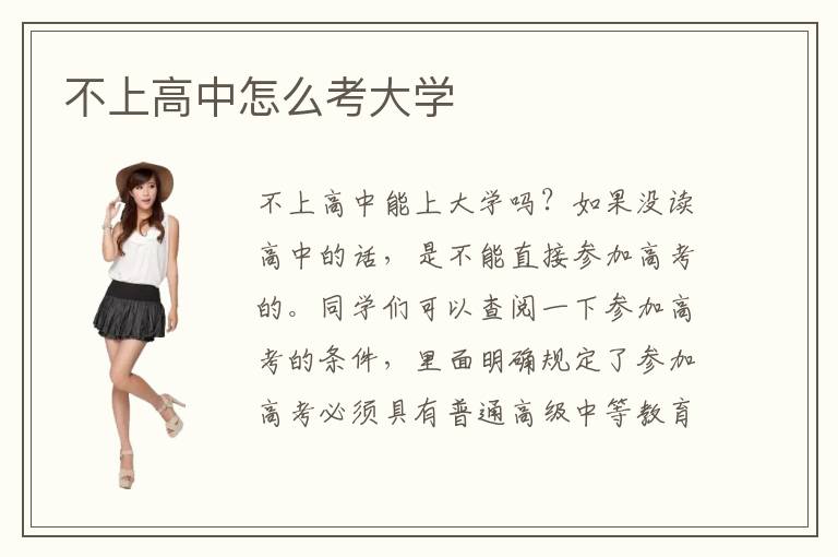 不上高中能上大學(xué)嗎?如果沒(méi)讀高中的話,是不能直接參加高考的。同學(xué)們可以查閱一下參加高考的條件,里面明確規(guī)定了參加高考必須具有普通高級(jí)中等教育機(jī)構(gòu)的畢業(yè)證書,或者是相同的學(xué)歷才可以。不上高中的話難道真的就沒(méi)有機(jī)會(huì)上大學(xué)了嗎,不上高中怎么上大學(xué)?筆者建議大家考慮一下幾種方法:一,復(fù)讀初三,再考一次高中。二,如果你是應(yīng)屆初中畢業(yè)生,那么正好可以讀職業(yè)高中。三,讀中專學(xué)校。中專學(xué)校主要側(cè)重點(diǎn)在于對(duì)某一專業(yè)技能的培訓(xùn),所以對(duì)學(xué)歷要求不高入學(xué)門檻低。四是上技工學(xué)校。技校主要是職業(yè)技能培訓(xùn),畢業(yè)后可以憑證直接上崗就業(yè)。不上高中能上大學(xué)嗎?以上學(xué)校都是與普通高中同等級(jí)的學(xué)校,畢業(yè)生是有資格參見(jiàn)全國(guó)高考的。所以同學(xué)們還是有機(jī)會(huì)上大學(xué)的。