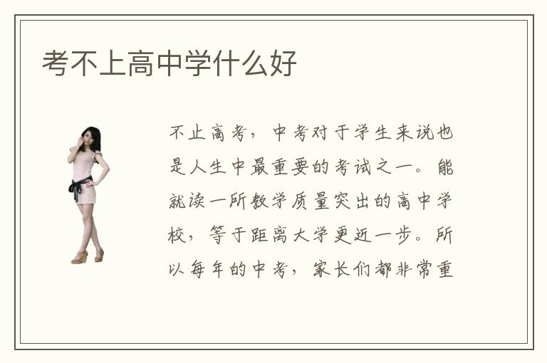 不止高考,中考對于學(xué)生來說也是人生中最重要的考試之一。能就讀一所教學(xué)質(zhì)量突出的高中學(xué)校,等于距離大學(xué)更近一步。所以每年的中考,家長們都非常重視。有的同學(xué)由于種種因素,在考試時(shí)發(fā)揮失常,沒能考出理想的成績,無緣高中。考不上高中學(xué)什么好?其實(shí),大學(xué)也并非改變命運(yùn)的唯一途徑。中考失利的情況下,同學(xué)們可以考慮就讀高職院校,或者職業(yè)技術(shù)學(xué)校,學(xué)習(xí)一門專業(yè)技術(shù)。高職院校畢業(yè)的學(xué)生,由學(xué)校統(tǒng)一頒發(fā)國家職業(yè)技術(shù)證書,并且由學(xué)校方安排實(shí)習(xí)就業(yè)。減輕就業(yè)方面壓力。考不上高中學(xué)什么專業(yè)好?每個(gè)人特長與性格不同,所以也就適合不同的專業(yè)。比如對理科感興趣的同學(xué),可以學(xué)習(xí)計(jì)算機(jī)專業(yè),會(huì)計(jì)專業(yè)等。文科特長生可以從事藝術(shù)設(shè)計(jì)類專業(yè)、學(xué)前教育專業(yè)等等。考不上高中學(xué)什么好就業(yè)?無論熱門行業(yè)也好,傳統(tǒng)行業(yè)也罷。每個(gè)崗位都需要專業(yè)人才,干得好都是有發(fā)展空間的。我們要關(guān)注的是對專業(yè)技術(shù)的掌握,而不在于行業(yè)的熱度。