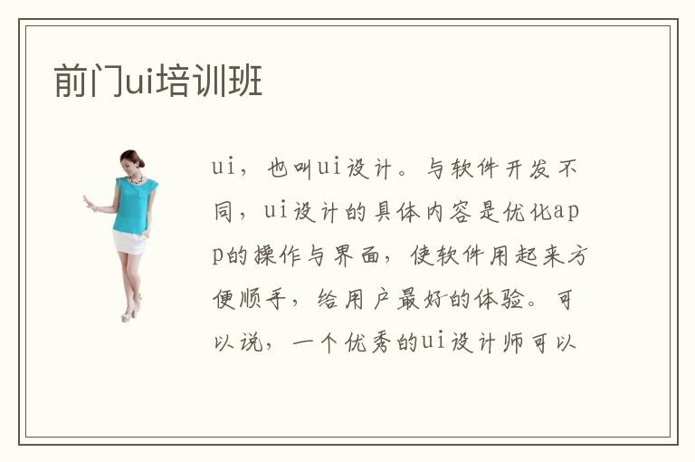 ui,也叫ui設(shè)計(jì)。與軟件開發(fā)不同,ui設(shè)計(jì)的具體內(nèi)容是優(yōu)化app的操作與界面,使軟件用起來方便順手,給用戶最好的體驗(yàn)。可以說,一個(gè)優(yōu)秀的ui設(shè)計(jì)師可以變相決定一款軟件的成敗。國(guó)內(nèi)很多大企業(yè),如騰訊,百度,阿里等,都成立了獨(dú)立的ui部門。前門ui培訓(xùn)班。目前,國(guó)內(nèi)的ui設(shè)計(jì)師仍處于人才稀缺狀態(tài),ui設(shè)計(jì)師屬于高薪熱門職業(yè)。所以,學(xué)好ui設(shè)計(jì),就業(yè)前景是非常好的。前門ui培訓(xùn)班怎么樣?正規(guī)的培訓(xùn)機(jī)構(gòu),教學(xué)質(zhì)量都是有保障的。所以,同學(xué)們?nèi)绻谇伴T附近,或者是別的地區(qū)選擇培訓(xùn)機(jī)構(gòu),一定要去正規(guī)的、有資質(zhì)的,不要被廣告宣傳所迷惑。ui培訓(xùn)后好就業(yè)嗎?前面已經(jīng)提到過,ui設(shè)計(jì)師在目前屬于人才短缺狀態(tài),而現(xiàn)在企業(yè)對(duì)ui設(shè)計(jì)越來越重視??梢哉fui設(shè)計(jì)師的在就業(yè)方面應(yīng)該不會(huì)有太大問題。