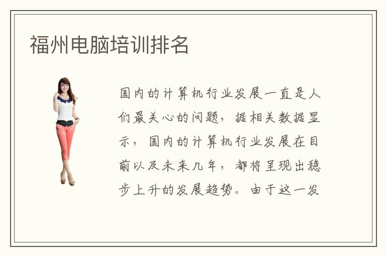 國內(nèi)的計算機行業(yè)發(fā)展一直是人們最關(guān)心的問題,據(jù)相關(guān)數(shù)據(jù)顯示,國內(nèi)的計算機行業(yè)發(fā)展在目前以及未來幾年,都將呈現(xiàn)出穩(wěn)步上升的發(fā)展趨勢。由于這一發(fā)展形勢,越來越多的人開始加入到計算機行業(yè)的學(xué)習(xí)中去,但是選擇一家靠譜的培訓(xùn)機構(gòu)談何容易。這時候,參考福州電腦培訓(xùn)排名,對于選擇一家綜合實力比較強的專業(yè)計算機培訓(xùn)機構(gòu)有很大的幫助。