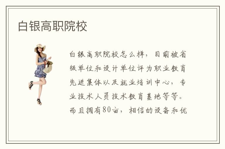白銀高職院校怎么樣,目前被省級單位和設(shè)計單位評為職業(yè)教育先進集體以及就業(yè)培訓(xùn)中心,專業(yè)技術(shù)人員技術(shù)教育基地等等。而且擁有80畝,相信的設(shè)備和優(yōu)良的資源配備一系列的時間最低,包括實驗樓,教學(xué)樓,綜合樓等等,而且擁有計算機開發(fā),互聯(lián)網(wǎng)電子科技,汽修等專業(yè)的實驗器材和實驗室,有助于讓孩子培養(yǎng)身心的理念以及實踐的精神。白銀高職院校教育資源是非常優(yōu)越的,比如教職工有110元,高級教師14人,其中碩士學(xué)位的教師占60%以上,而且開設(shè)了數(shù)控技術(shù),電工與電氣技術(shù)應(yīng)用,計算機應(yīng)用等等,都是目前非常熱門的行業(yè)。白銀高職院校成立于1984年,具有幾十年的教育經(jīng)驗,是一所集學(xué)歷教育以及職業(yè)培訓(xùn)綜合的職業(yè)技術(shù)培訓(xùn)機構(gòu),目前已經(jīng)先后培訓(xùn)各種人才7000多名,為當(dāng)?shù)氐纳鐣l(fā)展以及經(jīng)濟的建設(shè)提供了人才的資源。