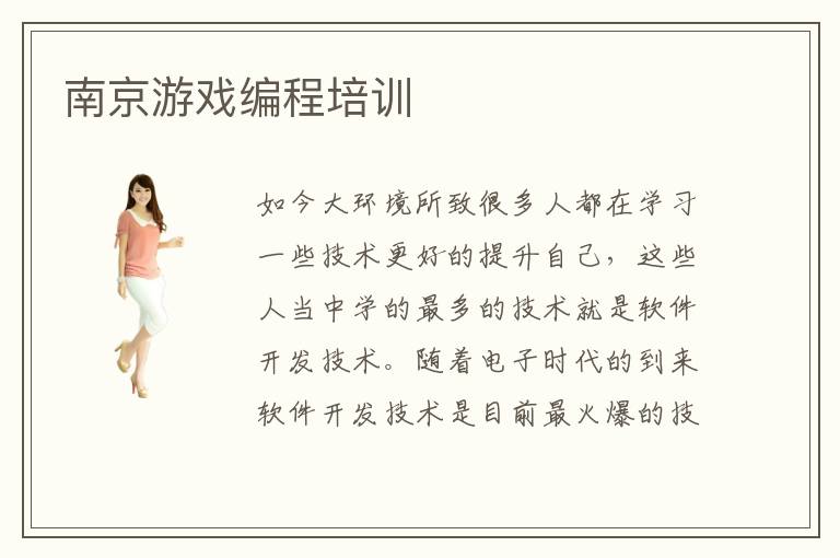 如今大環(huán)境所致很多人都在學(xué)習(xí)一些技術(shù)更好的提升自己,這些人當(dāng)中學(xué)的最多的技術(shù)就是軟件開發(fā)技術(shù)。隨著電子時(shí)代的到來(lái)軟件開發(fā)技術(shù)是目前最火爆的技術(shù)。所以很多人都在學(xué)習(xí)軟件開發(fā)技術(shù),讓自己得到更好的提升。而學(xué)習(xí)軟件開發(fā)技術(shù)就得去一些比較專業(yè)的學(xué)校進(jìn)行學(xué)習(xí)。而南京游戲編程培訓(xùn)就都非常的專業(yè),他們每年培養(yǎng)的人才不在少數(shù),所以想把軟件開發(fā)技術(shù)學(xué)的更好一些就得去南京游戲編程培訓(xùn)學(xué)習(xí),南京游戲編程培訓(xùn)雖然有很多所但是他們的教學(xué)模式都是比較統(tǒng)一的,所以來(lái)南京學(xué)習(xí)軟件技術(shù)完全可以放心。軟件開發(fā)技術(shù)是目前最流行的技術(shù)也是最受歡迎的技術(shù),時(shí)代的發(fā)展就是這樣的,你不懂的就要及時(shí)去學(xué)習(xí)不能落后于人,畢竟現(xiàn)在社會(huì)上面的競(jìng)爭(zhēng)是非常慘烈的,稍不留神就會(huì)被淘汰。編程培訓(xùn)班是在互聯(lián)網(wǎng)和游戲行業(yè)的發(fā)展下迅速成長(zhǎng)的,南京游戲編程培訓(xùn)在此條件下,規(guī)模和數(shù)量達(dá)到空前。大多數(shù)培訓(xùn)班為了吸引消費(fèi)者目光而在宣傳上煞費(fèi)苦心。卻等到真正入學(xué)時(shí),發(fā)現(xiàn)并沒(méi)有宣傳單上說(shuō)的這么好。那么優(yōu)秀的南京培訓(xùn)班有哪些呢?這些培訓(xùn)班通常有一個(gè)共同點(diǎn)就是沒(méi)有非常賣力的宣傳,而是默默的提升教學(xué)質(zhì)量,成為行業(yè)內(nèi)的清流。這些南京培訓(xùn)班有:南京北大青鳥,中軟卓越,北京積云教育,甲骨文,兄弟連。那么當(dāng)下社會(huì)編程師的工資能有多少呢?這和所處地域有一定聯(lián)系,一般在北上廣,深圳或者杭州等一線城市,編程師工資會(huì)高一些,一般在6-8k左右。算是同等職業(yè)中的高薪待遇了,因?yàn)檫@些城市都是我國(guó)游戲行業(yè)發(fā)展的特別好,發(fā)展速度也相當(dāng)快的城市,對(duì)于游戲行業(yè)的人才需求很大。軟件開發(fā)是目前游戲行業(yè)的熱門領(lǐng)域,軟件開發(fā)工程師也是當(dāng)下的高薪職業(yè)。軟件開發(fā)是一項(xiàng)需要需求捕捉、需求分析、設(shè)計(jì)、實(shí)現(xiàn)和測(cè)試的系統(tǒng)工程。南京游戲編程培訓(xùn)的機(jī)構(gòu)在辦學(xué)成果優(yōu)良的有:南京北大青鳥,中軟卓越,北京積云教育等。這幾所南京游戲編程培訓(xùn)機(jī)構(gòu)在辦學(xué)體系和上都形成了自己特色。那么這些南京游戲編程培訓(xùn)教學(xué)方針是什么?首先注重學(xué)生職業(yè)技能的培養(yǎng)和職業(yè)素養(yǎng)的養(yǎng)成,培訓(xùn)機(jī)構(gòu)會(huì)開展許多大型項(xiàng)目供學(xué)員進(jìn)行經(jīng)驗(yàn)總南京游戲編程培訓(xùn)情況結(jié)。那么軟件開發(fā)階段劃分有什么呢?涉及計(jì)劃,分析,設(shè)計(jì),編碼,測(cè)試,維護(hù)這幾個(gè)階段。剛剛開始入門的時(shí)候可能讓初學(xué)者比較迷茫,畢竟講究術(shù)業(yè)有專攻。但是縱觀整個(gè)游戲行業(yè),軟件開發(fā)師目前的就業(yè)前景是非常不錯(cuò)的。一旦入門,并且操作熟練后,掌握相關(guān)技能和工作經(jīng)驗(yàn),前景一片良好。