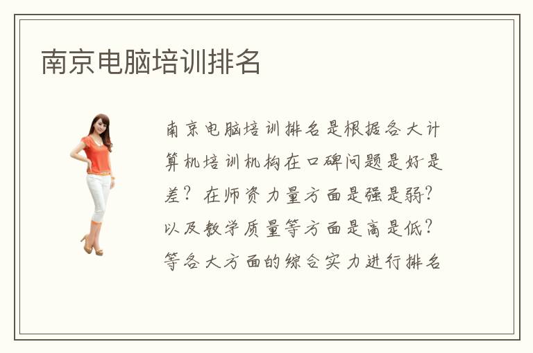南京電腦培訓(xùn)排名是根據(jù)各大計(jì)算機(jī)培訓(xùn)機(jī)構(gòu)在口碑問(wèn)題是好是差?在師資力量方面是強(qiáng)是弱?以及教學(xué)質(zhì)量等方面是高是低?等各大方面的綜合實(shí)力進(jìn)行排名而得出的結(jié)果。當(dāng)今社會(huì),專業(yè)的計(jì)算機(jī)培訓(xùn)機(jī)構(gòu)的挑選讓各位學(xué)員眼花繚亂,尤其是剛剛想要學(xué)習(xí)計(jì)算機(jī)專業(yè)的新手學(xué)員,以及具有“選擇糾結(jié)癥”的學(xué)生,因此南京培訓(xùn)機(jī)構(gòu)排名就起到了很大的作用。