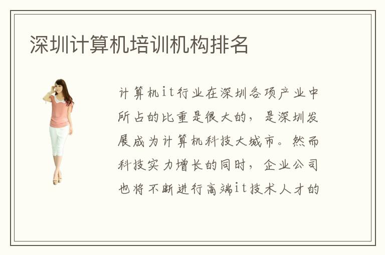 計算機it行業(yè)在深圳各項產(chǎn)業(yè)中所占的比重是很大的,是深圳發(fā)展成為計算機科技大城市。然而科技實力增長的同時,企業(yè)公司也將不斷進行高端it技術(shù)人才的招聘。要想不被這個競爭激烈的計算機市場所淘汰,更快地掌握技術(shù)的相關(guān)知識,進入到深圳it培訓(xùn)it培訓(xùn)機構(gòu),接受一些更高端更有效的教學(xué)培訓(xùn),是一個很正確的選擇。那么,你知道深圳計算機培訓(xùn)計算機培訓(xùn)機構(gòu)排名嘛?