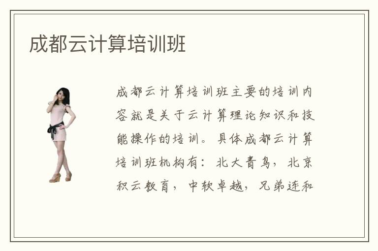 成都云計算培訓班主要的培訓內(nèi)容就是關于云計算理論知識和技能操作的培訓。具體成都云計算培訓云計算培訓班機構有:北大青鳥,北京積云教育,中軟卓越,兄弟連和甲骨文。在教師資源上,這幾所成都云計算培訓班機構都很不錯,聘請的培訓老師大多數(shù)都是研究生以上的學歷,具有扎實的專業(yè)功底和豐富的工作經(jīng)驗。因此這幾所成都云計算培訓班機構是個不錯的選擇。再說說當下成都云計算行業(yè)發(fā)展前景:作為當下推動云計算行業(yè)發(fā)展的一種新型的云計算服務模式,正在進入成熟的階段,所以發(fā)展前景在未來的5-7年都是非常好的,產(chǎn)業(yè)總值也將逐年增長。目前,云計算服務正在慢慢突破互聯(lián)網(wǎng)的范疇,政府和各行各業(yè)的企業(yè)也開始慢慢接受云計算的理念,并開始將其融合在自己的相關領域中。成都云計算培訓班機構中,比較受歡迎的成都云計算培訓班機構有:北京積云教育,中軟卓越,兄弟連,甲骨文以及北大青鳥。其中北大青鳥這所專門致力云計算培訓的機構最具特色。在教學經(jīng)驗上,北大青鳥從上個世紀末就開展了關于云計算方面的培訓教學,辦學數(shù)十年來,已經(jīng)成為社會各界專門培養(yǎng)云計算人才的培育基地。另外這所成都云計算培訓班機構教學方式也比較具有創(chuàng)新性,體現(xiàn)在教師選拔機制成熟,考核方式嚴格,經(jīng)過篩選后的培訓老師都是研究生以上的學歷,有5年以上的行業(yè)工作經(jīng)驗,獲取了相關專業(yè)的證書,可以說師資力量還是非常雄厚的。另外學校除了注重提升教師的教學質量外,也注重提升學生的學習質量,對于課上跟不上進度的學員,課下老師會安排小班制一對一面授教學,爭取讓每一位學員都能高效學習,熟練掌握專業(yè)知識。如今是一個大數(shù)據(jù)時代,愛學習,云計算技術成了當今最流行的話題。很多人都在學習云計算技術。云計算技術,是近幾年特別流行的一門專業(yè)性特別強的技術。想要掌握到云計算技術相關的專業(yè)知識,對到成都云計算培訓班機構去學習。成都云計算培訓班機構之間的歷史非常悠久的培訓機構。這些培訓機構在培養(yǎng)人才方面有著非常多的培訓經(jīng)驗。很多人都選擇到成都云計算培訓班機構里面培訓學習云計算技成都云計算培訓班機構教師專業(yè)嗎術。成都云計算培訓班機構里面的教師團隊都是非常專業(yè)的。每年都會招聘專業(yè)向教師來對學生們進行專業(yè)的授課。所以在成都云計算培訓班機構里面學習,學到的都是非常專業(yè)的知識。很多家長,都非常放心把孩子送到,成都云計算培訓班機構里面,學習云計算技術。
