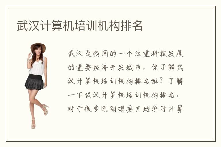 武漢是我國(guó)的一個(gè)注重科技發(fā)展的重要經(jīng)濟(jì)開發(fā)城市,你了解武漢計(jì)算機(jī)培訓(xùn)計(jì)算機(jī)培訓(xùn)機(jī)構(gòu)排名嘛?了解一下武漢計(jì)算機(jī)培訓(xùn)機(jī)構(gòu)排名,對(duì)于很多剛剛想要開始學(xué)習(xí)計(jì)算機(jī)專業(yè),但是卻苦于不知道哪家專業(yè)的計(jì)算機(jī)培訓(xùn)機(jī)構(gòu)靠譜的學(xué)生是很有幫助的。武漢計(jì)算機(jī)培訓(xùn)機(jī)構(gòu)排名數(shù)據(jù)真實(shí),根據(jù)各大培訓(xùn)機(jī)構(gòu)的口碑、師資力量以及就業(yè)率等各方面,實(shí)地考察比較而得出的結(jié)果。