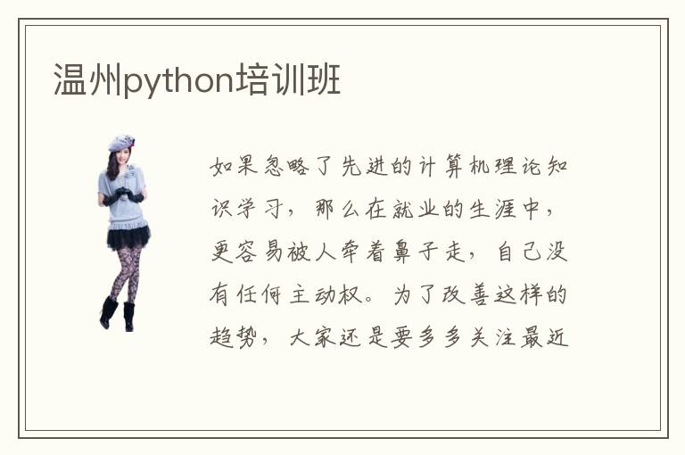 如果忽略了先進(jìn)的計(jì)算機(jī)理論知識(shí)學(xué)習(xí),那么在就業(yè)的生涯中,更容易被人牽著鼻子走,自己沒有任何主動(dòng)權(quán)。為了改善這樣的趨勢(shì),大家還是要多多關(guān)注最近比較新穎的計(jì)算機(jī)理論,比如大數(shù)據(jù)分析。如果還來不及了解,可選擇專業(yè)的培訓(xùn)班,提升專業(yè)的水平。那么溫州python培訓(xùn)班好選嗎,首先要看學(xué)校的資歷,教學(xué)標(biāo)準(zhǔn),每年的獲獎(jiǎng)情況,教學(xué)質(zhì)量和成果等等。要是學(xué)校的經(jīng)驗(yàn)比較豐富,老師的水平比較高,那么是應(yīng)該是比較值得選擇的學(xué)校。溫州python培訓(xùn)python培訓(xùn)班專業(yè)一般是針對(duì)企業(yè)共同培養(yǎng)學(xué)生,優(yōu)秀的畢業(yè)生可以直接到企業(yè)工作上班,大大節(jié)省找工作的時(shí)間。溫州python培訓(xùn)班水平目前來說還是相當(dāng)不錯(cuò)的,不過不同學(xué)校的教育水平,專場特色都不同,要針對(duì)自己感興趣的方面以及使用的方面來決定。