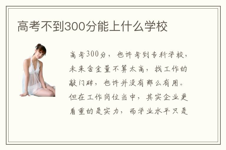 高考300分,也許考到??茖W(xué)校,未來含金量不算太高,找工作的敲門磚,也許并沒有那么有用。但在工作崗位當(dāng)中,其實企業(yè)更看重的是實力,而學(xué)業(yè)水平只是其中的一個方面而已。高考不到300分能上什么學(xué)校大專含金量如何,300分不足選擇的學(xué)校其實大專的含金量會下降,大家要面對的一些事實,然后遇強則強,逆襲而上。高考不到300分能上什么學(xué)校專業(yè)優(yōu)勢在哪,雖然高考300分不是特別高,能上的學(xué)校也不多,大多數(shù)都是??疲鋵嵰彩谴嬖趦?yōu)勢的。比如??圃盒8幼⒅貙嵺`,培訓(xùn)課程也會更多,讓學(xué)生深入淺出,更加重視實踐的內(nèi)容,而不是紙上談兵,只關(guān)注于書本里面的知識。所以大家也不要悲觀失望,其實未來的就職生涯中還有非常長,如果可以結(jié)合興趣愛好來考慮,那么在這個行業(yè)可以走得更加順暢,也豐富樂趣。