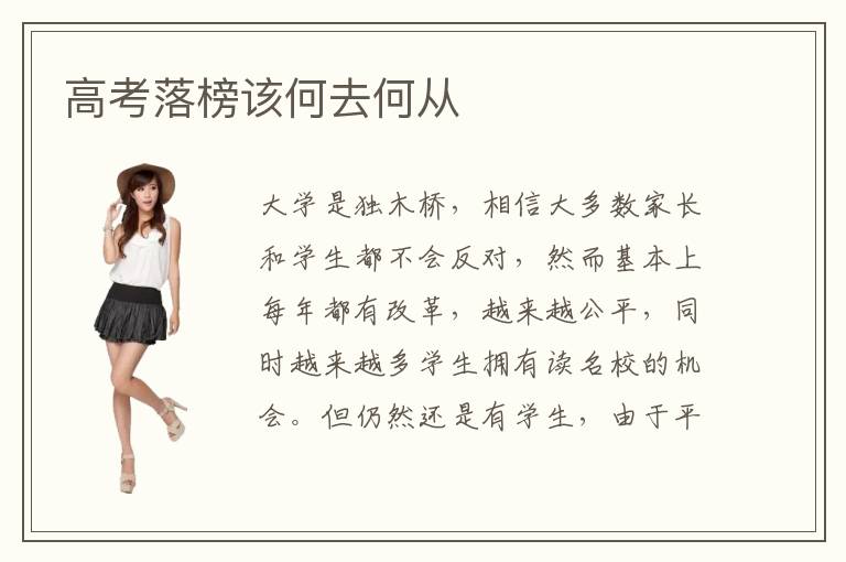 大學(xué)是獨(dú)木橋,相信大多數(shù)家長和學(xué)生都不會反對,然而基本上每年都有改革,越來越公平,同時(shí)越來越多學(xué)生擁有讀名校的機(jī)會。但仍然還是有學(xué)生,由于平時(shí)并不是特別在乎高考,沒有努力學(xué)習(xí),或者是準(zhǔn)備不充分,導(dǎo)致高考落榜的問題,感到特別后悔。高考落榜該何去何從有沒有必要再考一次,如果是不小心考砸了,沒有調(diào)整好自己的心態(tài),那么完全有必要再考一次。雖然大多數(shù)人覺得會浪費(fèi)一點(diǎn)時(shí)間,但在這一年中學(xué)習(xí)歷練會更多。高考落榜該何去何從要不要到國外留學(xué),高考落榜之后,如果覺得自己的家庭條件還不錯(cuò),而且家人要支持,不妨到國外留學(xué),一方面可以到全新的領(lǐng)域開拓視野,在完全陌生的環(huán)境,提高適應(yīng)的能力。可以掌握西方的思維,有些學(xué)生可能就會更加容易融入到西方的環(huán)境當(dāng)中,對未來的全球化發(fā)展確實(shí)是有比較大的優(yōu)勢。
