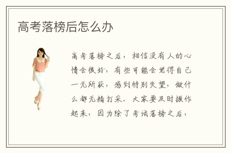 高考落榜之后,相信沒有人的心情會(huì)很好,有些可能會(huì)覺得自己一無(wú)所獲,感到特別失望,做什么都無(wú)精打采。大家要及時(shí)振作起來(lái),因?yàn)槌丝荚嚶浒裰螅€有很多事情要做,比如選學(xué)校。高考落榜后怎么辦讀大專有必要嗎,讀大專完全有必要,因?yàn)楝F(xiàn)在很多工作的崗位都必須以大專為基本的學(xué)歷,如果連這個(gè)學(xué)歷都沒有,那么很難應(yīng)聘。高考落榜后怎么辦有發(fā)展前途嗎,高考落榜之后不要總是認(rèn)為發(fā)展前景一片黑暗,其實(shí)恰恰相反,學(xué)生才20多歲,任何一種狀態(tài)都可以反敗為勝,都可以旗開得勝,都可以一片光明。20多歲充滿無(wú)限的可能,怎么可以說(shuō)沒有發(fā)展的前途??赡軙?huì)面對(duì)一次無(wú)可奈何的高考落榜,也許和名牌學(xué)校擦肩而過(guò),但是只要通過(guò)自身努力,不斷進(jìn)行彌補(bǔ),當(dāng)然前提條件是比別人付出更多,這樣才能夠趕超上。