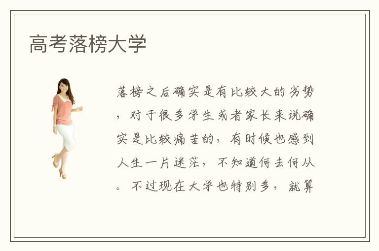 落榜之后確實(shí)是有比較大的劣勢(shì),對(duì)于很多學(xué)生或者家長(zhǎng)來(lái)說(shuō)確實(shí)是比較痛苦的,有時(shí)候也感到人生一片迷茫,不知道何去何從。不過(guò)現(xiàn)在大學(xué)也特別多,就算是落榜之后也可以找到比較好的大學(xué)類(lèi)型,雖然含金量并不如名牌大學(xué),但是也有一些學(xué)校的專(zhuān)業(yè)水平特別高,可以針對(duì)自己的專(zhuān)業(yè)優(yōu)勢(shì)來(lái)考慮。高考落榜大學(xué)有哪些專(zhuān)業(yè),高考落榜之后,可以放松一下自己的心情,不要馬上總是讓自己處于壓抑的狀態(tài)。其實(shí)自己努力了那么多年,謀事在人,成事在天,要調(diào)整好自己,選擇下一個(gè)轉(zhuǎn)折的方向。高考落榜大學(xué)讀大專(zhuān)也是不錯(cuò)的考慮,雖然沒(méi)有讀大學(xué)的機(jī)會(huì),但是大專(zhuān)其實(shí)還是不錯(cuò)的,有些人覺(jué)得自己的水平根本就不止大專(zhuān),那還可以再一次到高中學(xué)習(xí),進(jìn)行第二次高考,而這一次往往會(huì)有更好的經(jīng)驗(yàn)。