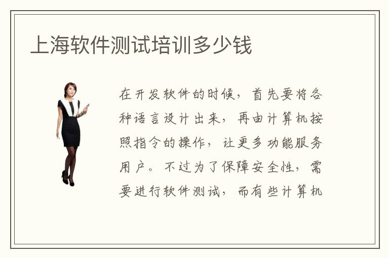 在開發(fā)軟件的時(shí)候,首先要將各種語(yǔ)言設(shè)計(jì)出來(lái),再由計(jì)算機(jī)按照指令的操作,讓更多功能服務(wù)用戶。不過(guò)為了保障安全性,需要進(jìn)行軟件測(cè)試,而有些計(jì)算機(jī)專業(yè)也有可能忽略了這些步驟,那么未來(lái)運(yùn)用的時(shí)候會(huì)遇到很多麻煩。所以大家還是要多關(guān)心軟件測(cè)試的方法,通過(guò)簡(jiǎn)單的技巧,讓軟件測(cè)試趕快掌握軟件本身存在的缺陷。上海軟件測(cè)試培訓(xùn)多少錢,軟件測(cè)試培訓(xùn)的價(jià)格一般都會(huì)是3000~5000元,但取決于軟件測(cè)試培訓(xùn)機(jī)構(gòu)的能力。有些機(jī)構(gòu)確實(shí)有很系統(tǒng)全面的課程,不管是軟件操作還是在理論知識(shí)、真實(shí)的應(yīng)用等等,都有全面的培訓(xùn),學(xué)生適應(yīng)更快能力更強(qiáng),報(bào)名費(fèi)用標(biāo)準(zhǔn)更高也很正常。上海軟件測(cè)試培訓(xùn)多少錢合適,其實(shí)一般都會(huì)在學(xué)生可以接受的范圍,不會(huì)特別貴。上海軟件測(cè)試培訓(xùn)多少錢有效果,如果是基礎(chǔ)性的課程,那么可能2000元到3000元。