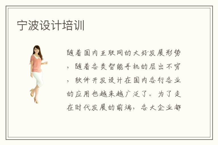隨著國內(nèi)互聯(lián)網(wǎng)的大好發(fā)展形勢,隨著各類智能手機的層出不窮,軟件開發(fā)設(shè)計在國內(nèi)各行各業(yè)的應(yīng)用也越來越廣泛了。為了走在時代發(fā)展的前端,各大企業(yè)都開始在招聘網(wǎng)站上發(fā)布著高薪招聘軟件開發(fā)技術(shù)人員,想要不斷設(shè)計更新企業(yè)旗下的應(yīng)用軟件,不斷拓寬企業(yè)的發(fā)展方向。那么,你覺得寧波軟件開發(fā)設(shè)計培訓,到底哪家的教學比較好呢?寧波軟件開發(fā)設(shè)計培訓大概要多久呢?