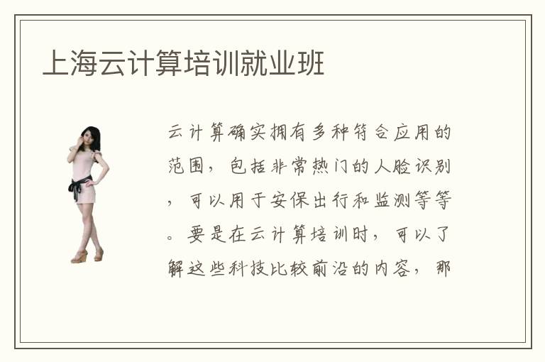 云計(jì)算確實(shí)擁有多種符合應(yīng)用的范圍,包括非常熱門的人臉識別,可以用于安保出行和監(jiān)測等等。要是在云計(jì)算培訓(xùn)時(shí),可以了解這些科技比較前沿的內(nèi)容,那么未來當(dāng)然就會有更廣闊的發(fā)展空間和優(yōu)勢。上海云計(jì)算培訓(xùn)就業(yè)班是值得考慮的,因?yàn)槔蠋熗切袠I(yè)內(nèi)的精英,在工作崗位上很多年,也可以積累更多干貨,讓學(xué)生掌握很多有用的知識點(diǎn),也能夠取其精華,去其糟粕,減少學(xué)生很多應(yīng)用方面的壓力和瓶頸。上海云計(jì)算培訓(xùn)就業(yè)班如何選,要看培訓(xùn)班的教學(xué)水準(zhǔn)、培訓(xùn)班的質(zhì)量和管理方法。有些云計(jì)算培訓(xùn)機(jī)構(gòu)可能只是按部就班講解云計(jì)算專業(yè)理論的知識,卻沒有真正的應(yīng)用過,學(xué)生當(dāng)然就很容易陷入困境。上海云計(jì)算培訓(xùn)就業(yè)班好不好,云計(jì)算培訓(xùn)就業(yè)班其實(shí)優(yōu)勢還是相當(dāng)突出的,管理模式更加新穎,教學(xué)水平比較高。