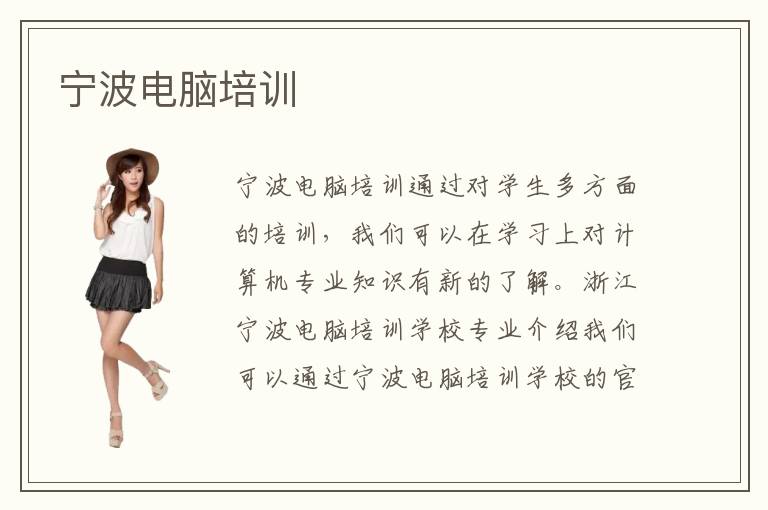 寧波電腦培訓(xùn)通過對學(xué)生多方面的培訓(xùn),我們可以在學(xué)習(xí)上對計算機專業(yè)知識有新的了解。浙江寧波電腦培訓(xùn)學(xué)校專業(yè)介紹我們可以通過寧波電腦培訓(xùn)學(xué)校的官網(wǎng)進行查閱和分析研究。寧波電腦培訓(xùn)機構(gòu)推薦有哪些?寧波電腦培訓(xùn)學(xué)校是學(xué)生想要提高自己的IT專業(yè)知識的比較有效的途徑之一,我們可以通過比較選擇到性價比高的寧波計算機培訓(xùn)機構(gòu)中心去學(xué)習(xí)。