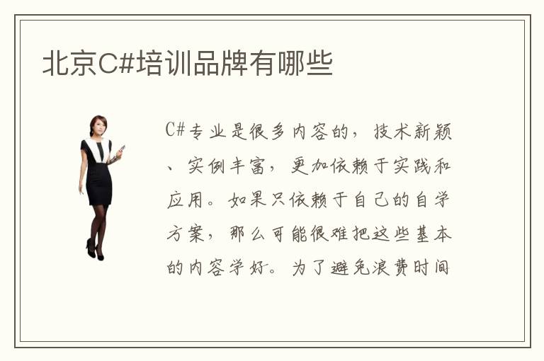 C#專業(yè)是很多內(nèi)容的,技術(shù)新穎、實例豐富,更加依賴于實踐和應(yīng)用。如果只依賴于自己的自學(xué)方案,那么可能很難把這些基本的內(nèi)容學(xué)好。為了避免浪費時間,可以多多掌握北京C#培訓(xùn)品牌有哪些,了解各種C#培訓(xùn)機構(gòu)的優(yōu)劣之處,然后再對比出適合自己到C#培訓(xùn)學(xué)校。北京C#培訓(xùn)品牌有哪些啊,其實C#培訓(xùn)機構(gòu)有很多的,不過也有部分學(xué)生由于第一次考慮C#培訓(xùn)機構(gòu),并不是很了解哪些品牌比較有優(yōu)勢,那么可以重點關(guān)注培訓(xùn)的方案、C#專業(yè)培訓(xùn)效率,基本口碑等等,然后再做出合適的培訓(xùn)決定。北京C#培訓(xùn)品牌特色鮮明,如果品牌的效應(yīng)比較強,那么基本的師資力量有保障,而且C#培訓(xùn)專業(yè)經(jīng)驗是非常豐富的,可以融合每個C#專業(yè)學(xué)生的基本能力以及學(xué)習(xí)習(xí)慣來培養(yǎng)。