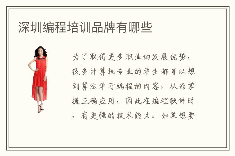 為了取得更多職業(yè)的發(fā)展優(yōu)勢(shì),很多計(jì)算機(jī)專業(yè)的學(xué)生都可以想到算法學(xué)習(xí)編程的內(nèi)容,從而掌握正確應(yīng)用,因此在編程軟件時(shí),有更強(qiáng)的技術(shù)能力。如果想要得到更高的水平,可以根據(jù)老師的指導(dǎo)來(lái)選擇調(diào)整的方案,也可以多多關(guān)注深圳編程培訓(xùn)品牌有哪些,掌握有效的培養(yǎng)方法,在未來(lái)也可以讓自己擁有更強(qiáng)的應(yīng)用實(shí)例。深圳編程培訓(xùn)品牌有哪些效果,如果專業(yè)的品牌有良好口碑,學(xué)生的教學(xué)成果也比較優(yōu)越,那么這些培訓(xùn)機(jī)構(gòu)還是值得大家重點(diǎn)關(guān)注。不過(guò)也有部分培訓(xùn)機(jī)構(gòu)品牌很好,但是卻沒(méi)有實(shí)力,屬于徒有虛表,所以要謹(jǐn)慎對(duì)比清楚。深圳編程培訓(xùn)品牌有哪些優(yōu)點(diǎn),主要是專業(yè)能力強(qiáng),教育優(yōu)勢(shì)顯著,帶來(lái)很多專業(yè)的課程,都是比較融合時(shí)代的發(fā)展,以及職場(chǎng)生涯中應(yīng)用比較多的內(nèi)容。