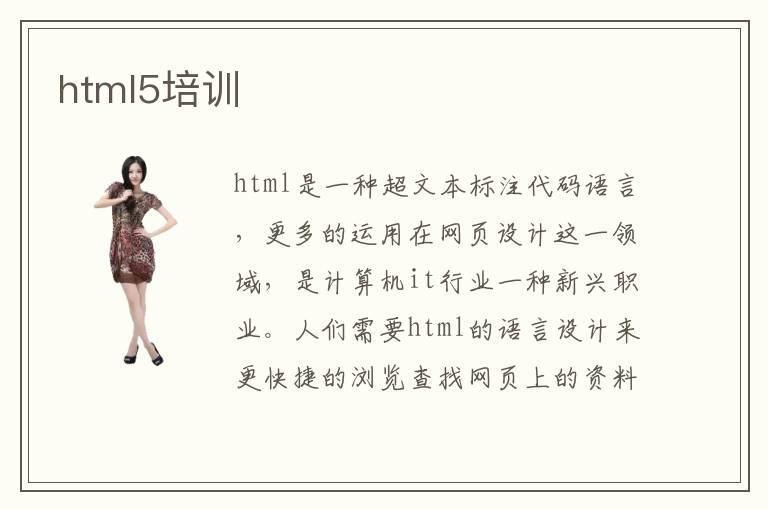 html是一種超文本標(biāo)注代碼語言,更多的運(yùn)用在網(wǎng)頁設(shè)計(jì)這一領(lǐng)域,是計(jì)算機(jī)it行業(yè)一種新興職業(yè)。人們需要html的語言設(shè)計(jì)來更快捷的瀏覽查找網(wǎng)頁上的資料,html的設(shè)計(jì)通過使用鼠標(biāo),點(diǎn)擊網(wǎng)頁上的某一處圖標(biāo),就會(huì)立刻彈出與此內(nèi)容相關(guān)的其他網(wǎng)頁內(nèi)容,是一種超文本的存在。如此方便大家的生活,我想這大概就是html為何如此流行的原因之一吧。那你知道html5培訓(xùn)什么嗎?