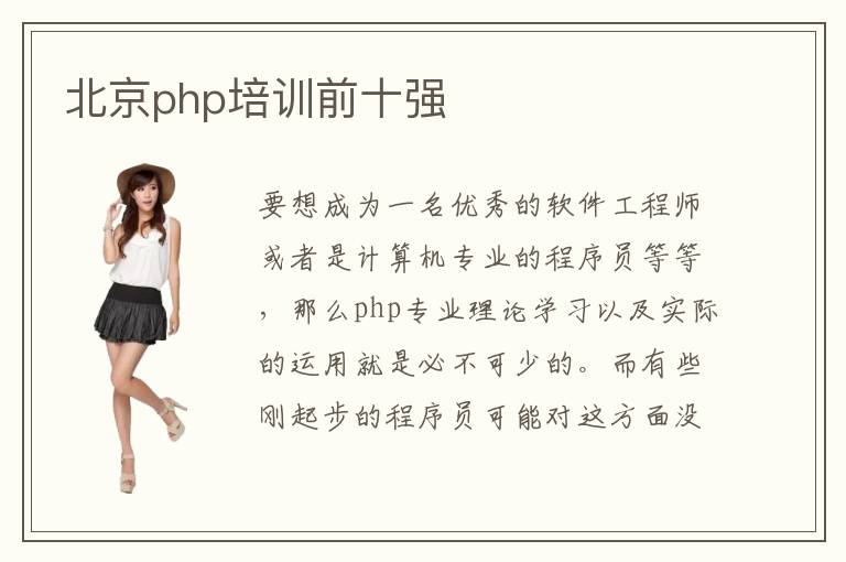 要想成為一名優(yōu)秀的軟件工程師或者是計算機專業(yè)的程序員等等,那么php專業(yè)理論學(xué)習(xí)以及實際的運用就是必不可少的。而有些剛起步的程序員可能對這方面沒有太多經(jīng)驗,也不知道如何應(yīng)用,可以多對比北京php培訓(xùn)前十強,了解專業(yè)的培訓(xùn)機構(gòu)類型,工作時可提升更高的效率。北京php培訓(xùn)前十強時間多不多,一般培訓(xùn)php專業(yè)的時間不會很長,效率高,大概學(xué)習(xí)時長是一個月到兩個月。北京php培訓(xùn)前十強怎樣判斷,要想判斷一個php培訓(xùn)機構(gòu)好不好,那么要看專業(yè)能力、基本的學(xué)生口碑、老師的專業(yè)水平。如果連老師的專業(yè)能力都沒有辦法風(fēng)險,那么學(xué)生在這些老師身上學(xué)到的知識內(nèi)容當(dāng)然就會很少,可能還會出現(xiàn)退步的情況。所以學(xué)生應(yīng)該要懂得先關(guān)注各種不同的師資,看一下老師的基本能力學(xué)歷、教學(xué)經(jīng)驗等等。