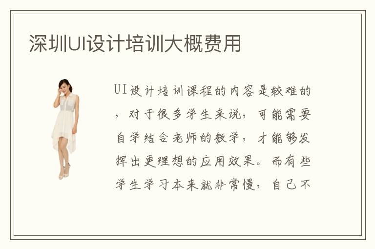 UI設(shè)計培訓(xùn)課程的內(nèi)容是較難的,對于很多學生來說,可能需要自學結(jié)合老師的教學,才能夠發(fā)揮出更理想的應(yīng)用效果。而有些學生學習本來就非常慢,自己不能夠獨當一面,掌握更多先進的知識內(nèi)容,那么可以多多關(guān)注深圳UI設(shè)計培訓(xùn)大概費用,了解大概的教學培訓(xùn)方案和教學機構(gòu),也許可以取得更明顯UI設(shè)計的培訓(xùn)優(yōu)勢。深圳UI設(shè)計培訓(xùn)大概費用怎么樣,可能是花3000元到15000元,不過也機構(gòu)在培養(yǎng)方案方面以及課程內(nèi)容設(shè)置方面有很大的差異,因此不可以只是關(guān)注大概的數(shù)字,還要多了解教學的質(zhì)量、培養(yǎng)成果等等。深圳UI設(shè)計培訓(xùn)大概費用大概多少,有些學生的條件比較好,想要找高端的課程服務(wù)項目,也選擇1對1的指導(dǎo),那么這些學生可以得到全面的知識體系培訓(xùn),而且效率高得多,收費也會隨著上升。