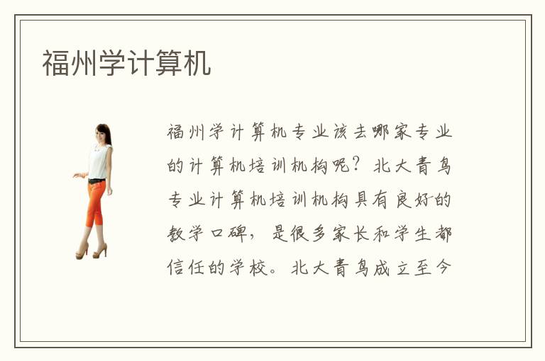 福州學(xué)計算機專業(yè)該去哪家專業(yè)的計算機培訓(xùn)機構(gòu)呢?北大青鳥專業(yè)計算機培訓(xùn)機構(gòu)具有良好的教學(xué)口碑,是很多家長和學(xué)生都信任的學(xué)校。北大青鳥成立至今已經(jīng)有了數(shù)十年的教學(xué)歷史了,為了方便各地的學(xué)生都可以接受到專業(yè)的計算機課程培訓(xùn),在各地都有開設(shè)授權(quán)的分機構(gòu)。為什么說北大青鳥比較靠譜呢?這是因為北大青鳥會根據(jù)學(xué)員計算機基礎(chǔ)能力的不同而安排課程,使得學(xué)習(xí)效果最大化。