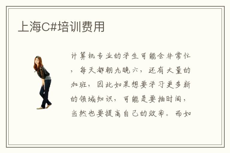 計(jì)算機(jī)專業(yè)的學(xué)生可能會(huì)非常忙,每天都朝九晚六,還有大量的加班,因此如果想要學(xué)習(xí)更多新的領(lǐng)域知識(shí),可能是要抽時(shí)間,當(dāng)然也要提高自己的效率。而如果想要快速掌握C#專業(yè)知識(shí),那么可以考慮專業(yè)的培訓(xùn)班,老師會(huì)通過更加詳細(xì)的講解以及快速的培訓(xùn)方案,讓學(xué)生可以短時(shí)間內(nèi)懂得更多知識(shí),也能夠優(yōu)化自身的應(yīng)用水平。上海C#培訓(xùn)費(fèi)用可能在3000~6700塊,但是如果是比較高級(jí)的C#專業(yè)機(jī)構(gòu),那么學(xué)習(xí)的費(fèi)用更高也不足奇怪,另外不管選擇哪些培訓(xùn)機(jī)構(gòu),學(xué)生自己也要針對(duì)自身的能力以及基礎(chǔ)來(lái)考慮課程項(xiàng)目。上海C#培訓(xùn)費(fèi)用波動(dòng)因素應(yīng)該看課程內(nèi)容以及培養(yǎng)方案、排名口碑情況、輔導(dǎo)方法等等。上海C#培訓(xùn)費(fèi)用大概多少,有些機(jī)構(gòu)確實(shí)是有良好的口碑,那么收費(fèi)標(biāo)準(zhǔn)可能比其他C#方專業(yè)機(jī)構(gòu)更貴。
