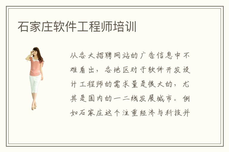 從各大招聘網(wǎng)站的廣告信息中不難看出,各地區(qū)對于軟件開發(fā)設(shè)計工程師的需求量是很大的,尤其是國內(nèi)的一二線發(fā)展城市。例如石家莊這個注重經(jīng)濟與科技并齊發(fā)展的城市,各大企業(yè)都在高薪招聘優(yōu)秀的軟件開發(fā)設(shè)計工程師,因此也就有了對于軟件開發(fā)設(shè)計工程師的專業(yè)培訓(xùn)機構(gòu)。那么,石家莊軟件工程師培訓(xùn)的項目一般是什么呢?石家莊軟件工程師培訓(xùn)的方式適合新手嘛?