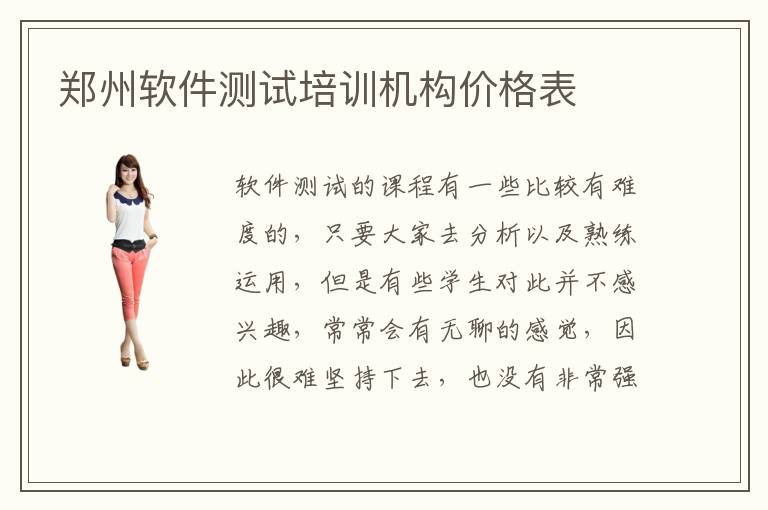 鄭州軟件測(cè)試培訓(xùn)機(jī)構(gòu)價(jià)格表