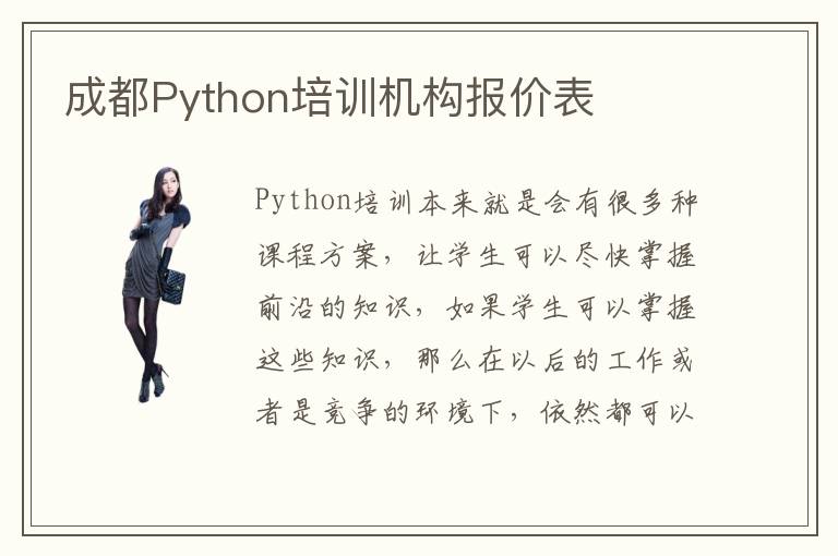 Python培訓(xùn)本來(lái)就是會(huì)有很多種課程方案,讓學(xué)生可以盡快掌握前沿的知識(shí),如果學(xué)生可以掌握這些知識(shí),那么在以后的工作或者是競(jìng)爭(zhēng)的環(huán)境下,依然都可以保持良好水平。成都Python培訓(xùn)機(jī)構(gòu)報(bào)價(jià)表大概在2500到1萬(wàn)元之間,但是課程水平比較高級(jí)的情況下,那么收費(fèi)標(biāo)準(zhǔn)會(huì)有更大的浮動(dòng)。Python培訓(xùn)機(jī)構(gòu)必要性大不大,其實(shí)有些人的技術(shù)能力不同,沒(méi)有很好的水平,那么可以考慮這些Python的機(jī)構(gòu),應(yīng)該會(huì)有更全面的提高。Python培訓(xùn)機(jī)構(gòu)時(shí)間目前來(lái)說(shuō)還是比較短的,老師也會(huì)尊重學(xué)生的平常上課時(shí)間,雖然說(shuō)學(xué)生平常工作太忙,又或者是傳統(tǒng)學(xué)校老師布置的作業(yè)太多,但是輔導(dǎo)老師仍然是會(huì)根據(jù)學(xué)生的時(shí)間安排去設(shè)計(jì)各種課程內(nèi)容,讓學(xué)生可以在有限的時(shí)間內(nèi),掌握更多更全面的Python知識(shí)。因此以后在學(xué)習(xí)的過(guò)程中,就不會(huì)有太多學(xué)習(xí)的難點(diǎn)或者是障礙問(wèn)題。