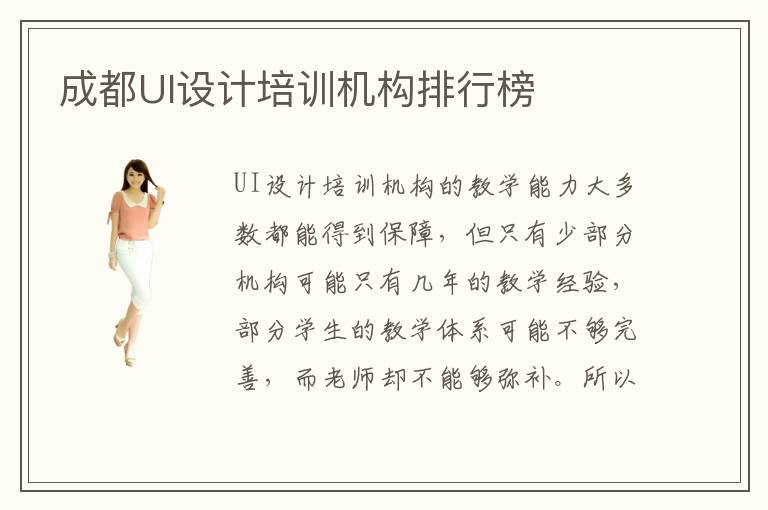 UI設(shè)計培訓(xùn)機構(gòu)的教學能力大多數(shù)都能得到保障,但只有少部分機構(gòu)可能只有幾年的教學經(jīng)驗,部分學生的教學體系可能不夠完善,而老師卻不能夠彌補。所以大家要重點關(guān)注成都UI設(shè)計培訓(xùn)機構(gòu)排行榜,了解老師的教學水平,機構(gòu)的教學能力以及UI設(shè)計培訓(xùn)機構(gòu)口碑怎樣,如果發(fā)現(xiàn)口碑不好,而且能力有限,那么這些機構(gòu)應(yīng)該是作為次要考慮。UI設(shè)計培訓(xùn)機構(gòu)教學質(zhì)量是很重要的選擇機構(gòu)參考因素,因為如果UI設(shè)計培訓(xùn)機構(gòu)的教學質(zhì)量保證不了,那么也許以后的學習成果就很難凸顯,學生的收獲更小,這些機構(gòu)當然就更不應(yīng)該考慮。其實目前來說大多數(shù)UI設(shè)計培訓(xùn)機構(gòu)都會保證教學質(zhì)量,一直都在優(yōu)化這些方面的知識,就是希望可以得到更多學生肯定,取得良好口碑,那么以后就可以招攬更多學生,為更多學生服務(wù)。