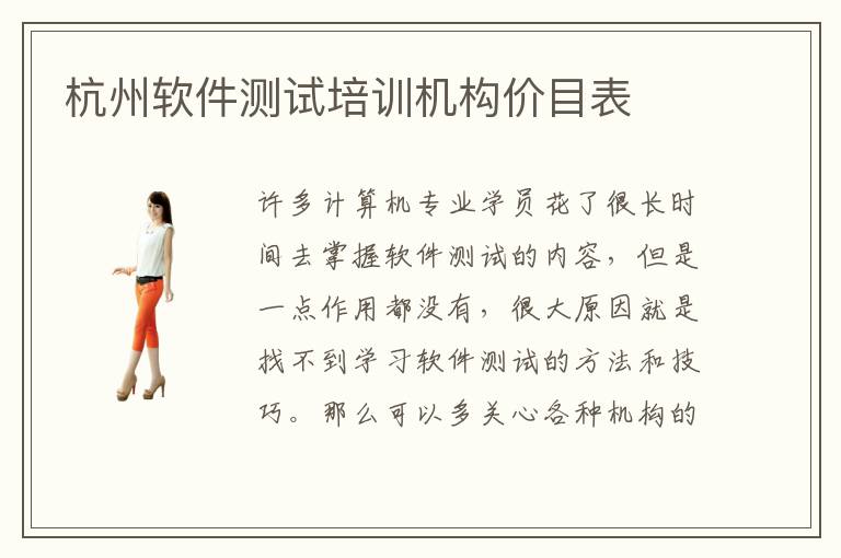 許多計(jì)算機(jī)專業(yè)學(xué)員花了很長(zhǎng)時(shí)間去掌握軟件測(cè)試的內(nèi)容,但是一點(diǎn)作用都沒(méi)有,很大原因就是找不到學(xué)習(xí)軟件測(cè)試的方法和技巧。那么可以多關(guān)心各種機(jī)構(gòu)的培訓(xùn)內(nèi)容,當(dāng)然也要了解杭州軟件測(cè)試培訓(xùn)機(jī)構(gòu)價(jià)目表,找到合適的軟件測(cè)試的輔導(dǎo)班。軟件測(cè)試培訓(xùn)機(jī)構(gòu)口碑以及軟件測(cè)試培訓(xùn)效果是大家在選軟件測(cè)試培訓(xùn)機(jī)構(gòu)之前要考慮的因素,因?yàn)橛行┸浖y(cè)試培訓(xùn)機(jī)構(gòu)的口碑很普通,主要就是沒(méi)有良好學(xué)習(xí)環(huán)境,而且課程也很一般,現(xiàn)在會(huì)缺乏很多重要知識(shí)點(diǎn)的講解,老師的資歷不夠高等等。但如今的軟件測(cè)試培訓(xùn)機(jī)構(gòu)都是相當(dāng)正規(guī)的,也會(huì)聘請(qǐng)行業(yè)內(nèi)知名的技術(shù)總監(jiān)或是導(dǎo)師作為學(xué)生的輔導(dǎo)老師,讓學(xué)生可以在這些專業(yè)領(lǐng)域方面取得更加可觀的技術(shù)成績(jī),又可以在軟件測(cè)試方面開(kāi)拓發(fā)展空間。