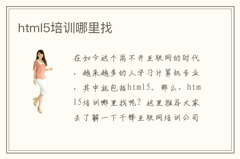 在如今這個(gè)離不開(kāi)互聯(lián)網(wǎng)的時(shí)代,越來(lái)越多的人學(xué)習(xí)計(jì)算機(jī)專(zhuān)業(yè),其中就包括html5。那么,html5培訓(xùn)哪里找呢?這里推薦大家去了解一下千鋒互聯(lián)網(wǎng)培訓(xùn)公司,這是一家專(zhuān)業(yè)的正規(guī)的培訓(xùn)機(jī)構(gòu),是學(xué)員學(xué)習(xí)html5,交流學(xué)習(xí)中的問(wèn)題的好平臺(tái),承載了千千萬(wàn)萬(wàn)學(xué)子成為網(wǎng)頁(yè)設(shè)計(jì)師的夢(mèng)想。想要了解更多關(guān)于千鋒互聯(lián)網(wǎng)培訓(xùn)公司信息嗎?進(jìn)入千鋒官網(wǎng)在線(xiàn),不懂的問(wèn)題可以咨詢(xún)?cè)诰€(xiàn)老師哦。