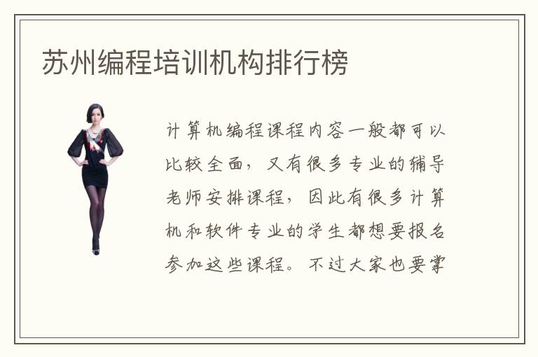 計算機編程課程內(nèi)容一般都可以比較全面,又有很多專業(yè)的輔導老師安排課程,因此有很多計算機和軟件專業(yè)的學生都想要報名參加這些課程。不過大家也要掌握蘇州編程培訓機構(gòu)排行榜,并且有些輔導機構(gòu)的綜合實力不是很強,因此排名比較靠后,對于計算機編程的學員來說可能很難看到明顯的進步。編程培訓機構(gòu)多長時間,有時候是一個月到三個月,也有些課程是半年才能學完,要看編程培訓機構(gòu)應(yīng)用水平,以及平時的時間安排學習的進度等等。如果學習效率比較高,那么計算機編程培訓用的能力也會加強,以后學習的時間也不用太長。但如果學習的效率很低,學生要懂得去彌補各種專業(yè)的缺陷,要聽老師的安排,控制學習進度,了解學習的技巧,那么以后計算機編程的能力才會更強。