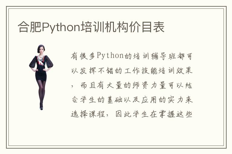 有很多Python的培訓(xùn)輔導(dǎo)班都可以發(fā)揮不錯(cuò)的工作技能培訓(xùn)效果,而且有大量的師資力量可以結(jié)合學(xué)生的基礎(chǔ)以及應(yīng)用的實(shí)力來選擇課程,因此學(xué)生在掌握這些知識(shí)的過程中,可以少走很多彎路,也能提高學(xué)習(xí)進(jìn)度,改善學(xué)習(xí)的難度,讓學(xué)生在輕松的氛圍下掌握Python的知識(shí)內(nèi)容。合肥Python培訓(xùn)機(jī)構(gòu)價(jià)目表大概區(qū)間在4000到12,000元,但是由于課程內(nèi)容、培訓(xùn)的輔導(dǎo)方法不同,因此Python培訓(xùn)機(jī)構(gòu)的教育質(zhì)量和輔導(dǎo)優(yōu)勢(shì)也不太一樣。Python培訓(xùn)機(jī)構(gòu)時(shí)間長(zhǎng)嗎,有些Python培訓(xùn)質(zhì)量比較高的學(xué)校,專業(yè)輔導(dǎo)方法會(huì)比較全面,也能帶來非常優(yōu)越的技術(shù),因此效果會(huì)有很高的保障。Python培訓(xùn)機(jī)構(gòu)應(yīng)用一般都可以結(jié)合當(dāng)下比較重要的科技來進(jìn)行培訓(xùn),學(xué)生只要能充分理解學(xué)校提供的知識(shí)講解,一般都會(huì)有很明顯的提高。