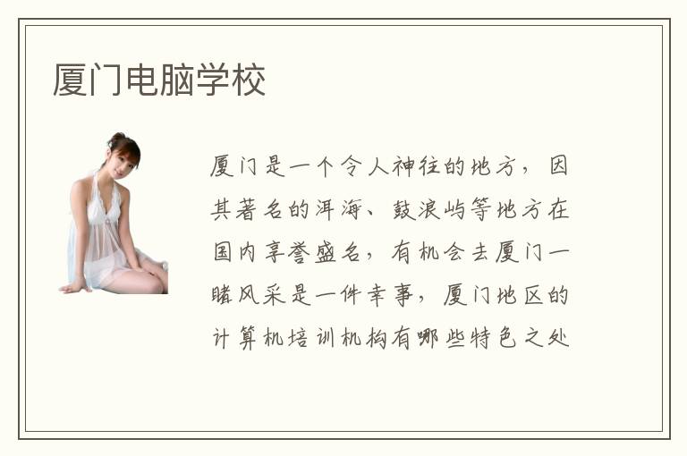 廈門是一個令人神往的地方,因其著名的洱海、鼓浪嶼等地方在國內(nèi)享譽盛名,有機會去廈門一睹風(fēng)采是一件幸事,廈門地區(qū)的計算機培訓(xùn)機構(gòu)有哪些特色之處?廈門電腦學(xué)校是滿懷著人文情懷和專業(yè)訓(xùn)練的培訓(xùn)基地,我們一定能在學(xué)習(xí)的時候樂在其中。廈門計算機培訓(xùn)計算機培訓(xùn)中心貴不貴?廈門計算機訓(xùn)練平臺培訓(xùn)效率高,學(xué)生們能夠在這樣的舞臺上把長處發(fā)揮得淋漓盡致。