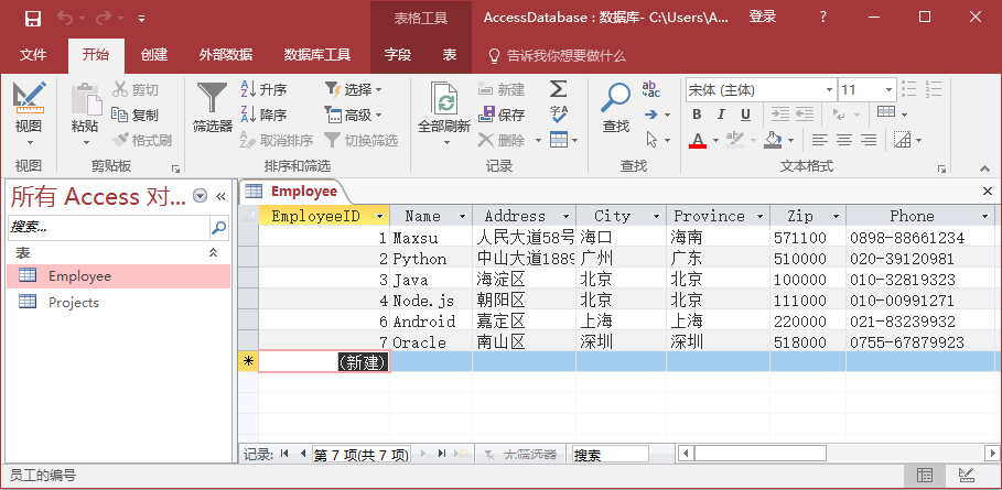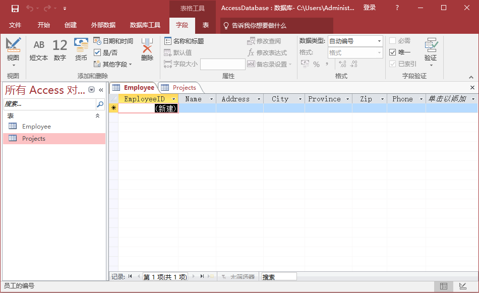 Access數(shù)據(jù)庫(kù)與Microsoft Office Word文檔或Microsoft Office PowerPoint并不是相同的文件形式。 相反,Access數(shù)據(jù)庫(kù)是像表,表格,報(bào)表,查詢等對(duì)象的集合,它們必須協(xié)同工作才能使數(shù)據(jù)庫(kù)正常工作。經(jīng)過學(xué)習(xí)上一節(jié)的示例,我們已經(jīng)在數(shù)據(jù)庫(kù)中創(chuàng)建了兩個(gè)包含所有必需的字段和字段屬性的表。 要在Access中查看,更改,插入或刪除表格中的數(shù)據(jù),可以使用表格的數(shù)據(jù)表視圖。