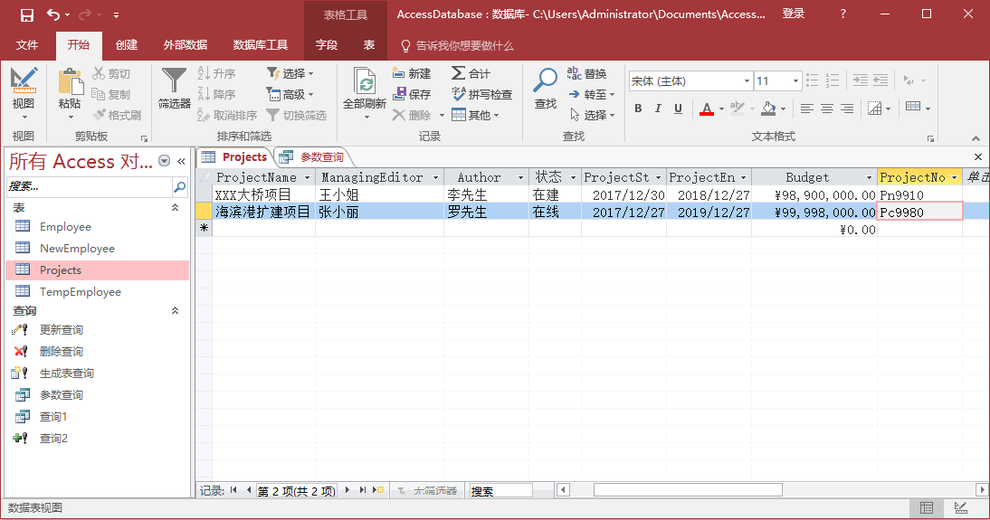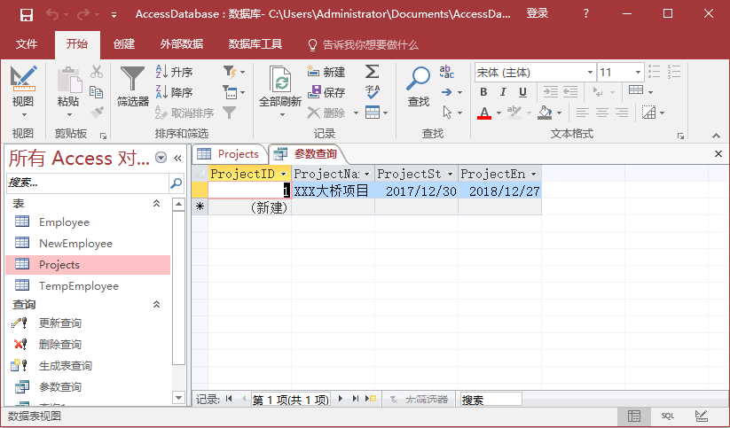 因此,將看到2017年12月30日開始的項(xiàng)目的詳細(xì)信息。 轉(zhuǎn)到“設(shè)計(jì)視圖”并再次運(yùn)行查詢,輸入項(xiàng)目開始時(shí)間:2017-12-27。
