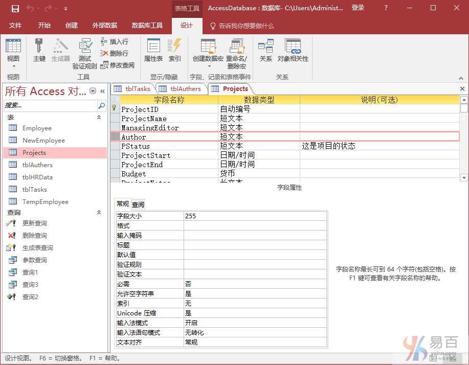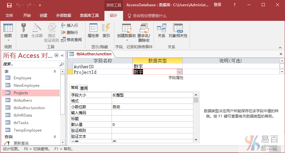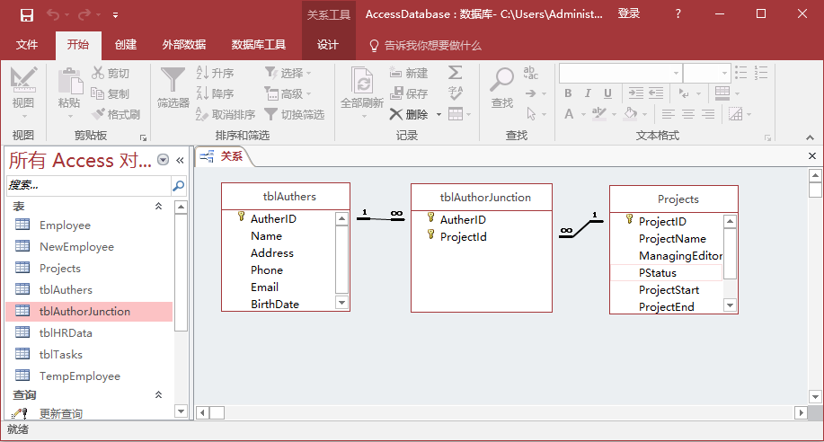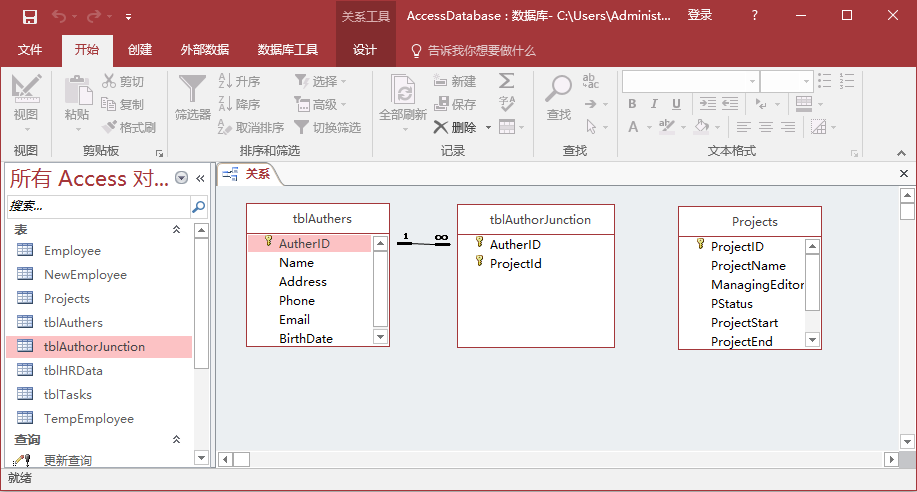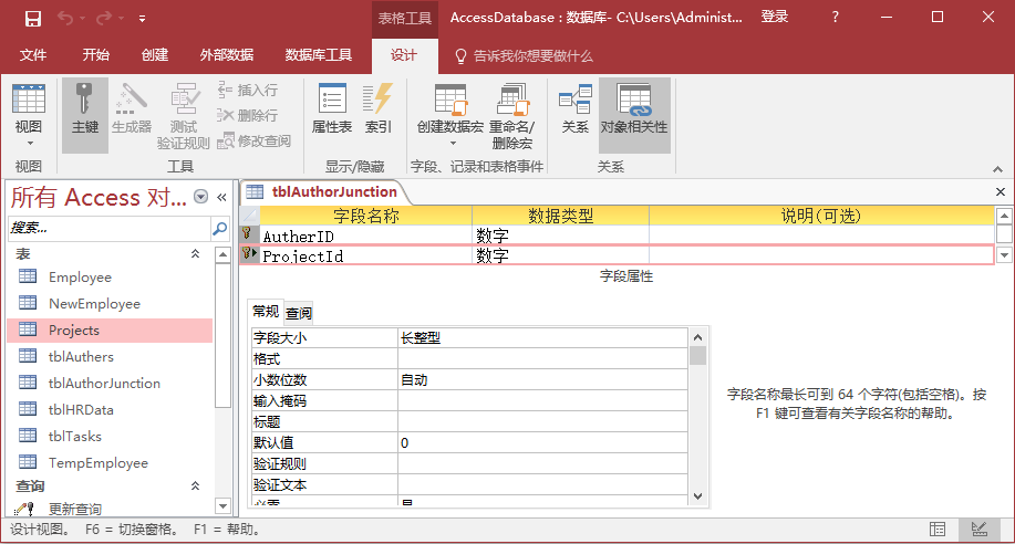 現(xiàn)在單擊并拖動ProjectID,放在tblAuthorJunction的ProjectID字段上。