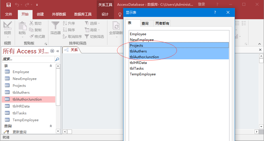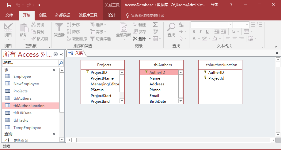 這兩個字段的組合是表的唯一標識符。 現(xiàn)在把這個表保存為 - tblAuthorJunction。