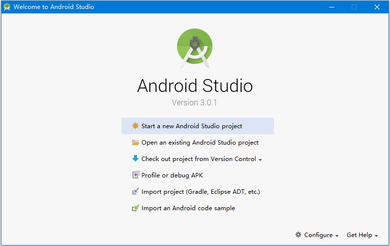 第一步是使用Android Studio創(chuàng)建一個(gè)簡(jiǎn)單的Android應(yīng)用程序。 當(dāng)點(diǎn)擊Android Studio圖標(biāo)啟動(dòng)完成時(shí),它將顯示如下所示的屏幕 -
