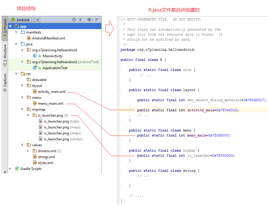 在R.java類中定義的常量是根據(jù)Project中的資源來創(chuàng)建的: