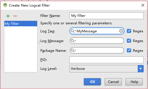 現(xiàn)在,logcat 窗口只顯示指定的消息。