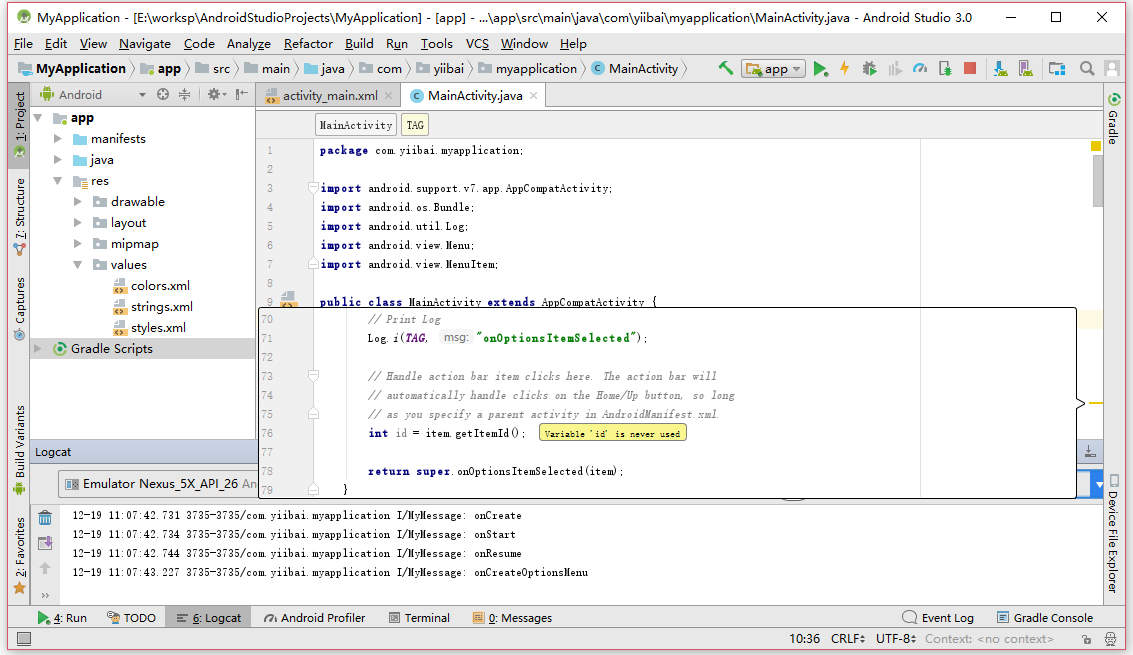 為了更容易理解,可以修改MainActivity類的代碼,覆蓋onStart(),onResume()等方法,添加顯示方法已經(jīng)運(yùn)行的消息。重新運(yùn)行應(yīng)用程序,看看會(huì)發(fā)生什么?