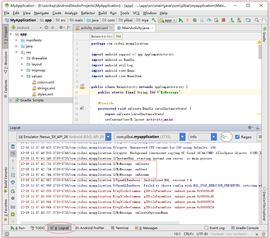 重新運(yùn)行應(yīng)用程序,并且看到記錄在logcat窗口上的消息。
