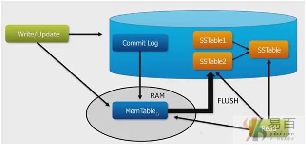 節(jié)點(diǎn)的每個(gè)寫(xiě)入活動(dòng)都由寫(xiě)入節(jié)點(diǎn)的提交日志捕獲。 之后,數(shù)據(jù)將被捕獲并存儲(chǔ)在內(nèi)存表中。 每當(dāng)內(nèi)存表已滿(mǎn)時(shí),數(shù)據(jù)將被寫(xiě)入SStable數(shù)據(jù)文件。 所有寫(xiě)入在整個(gè)集群中自動(dòng)分區(qū)和復(fù)制。 Cassandra定期整合SSTables,丟棄不必要的數(shù)據(jù)。