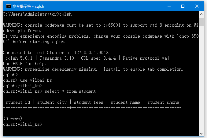 cqlsh> use yiibai_ks;