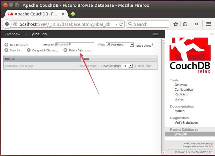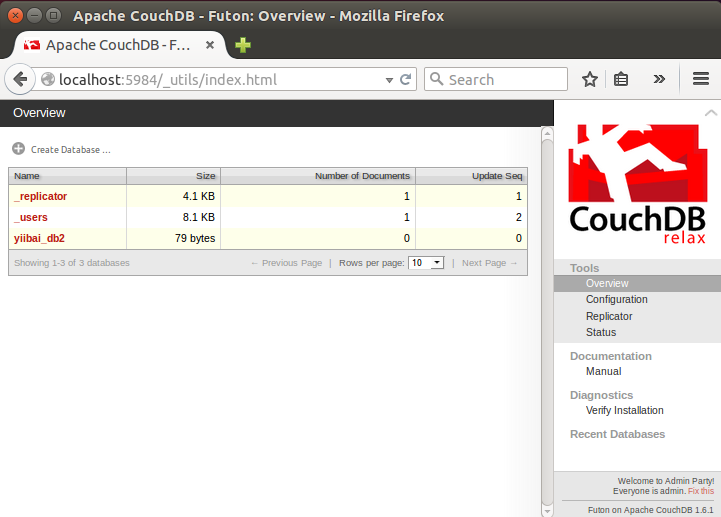 打開Fauxton網(wǎng)址:http://localhost:5984/_utils/ ,如下圖所示 -