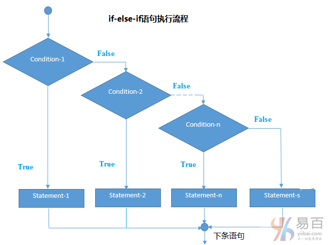 if-else-if語句的執(zhí)行流程如下圖所示 -